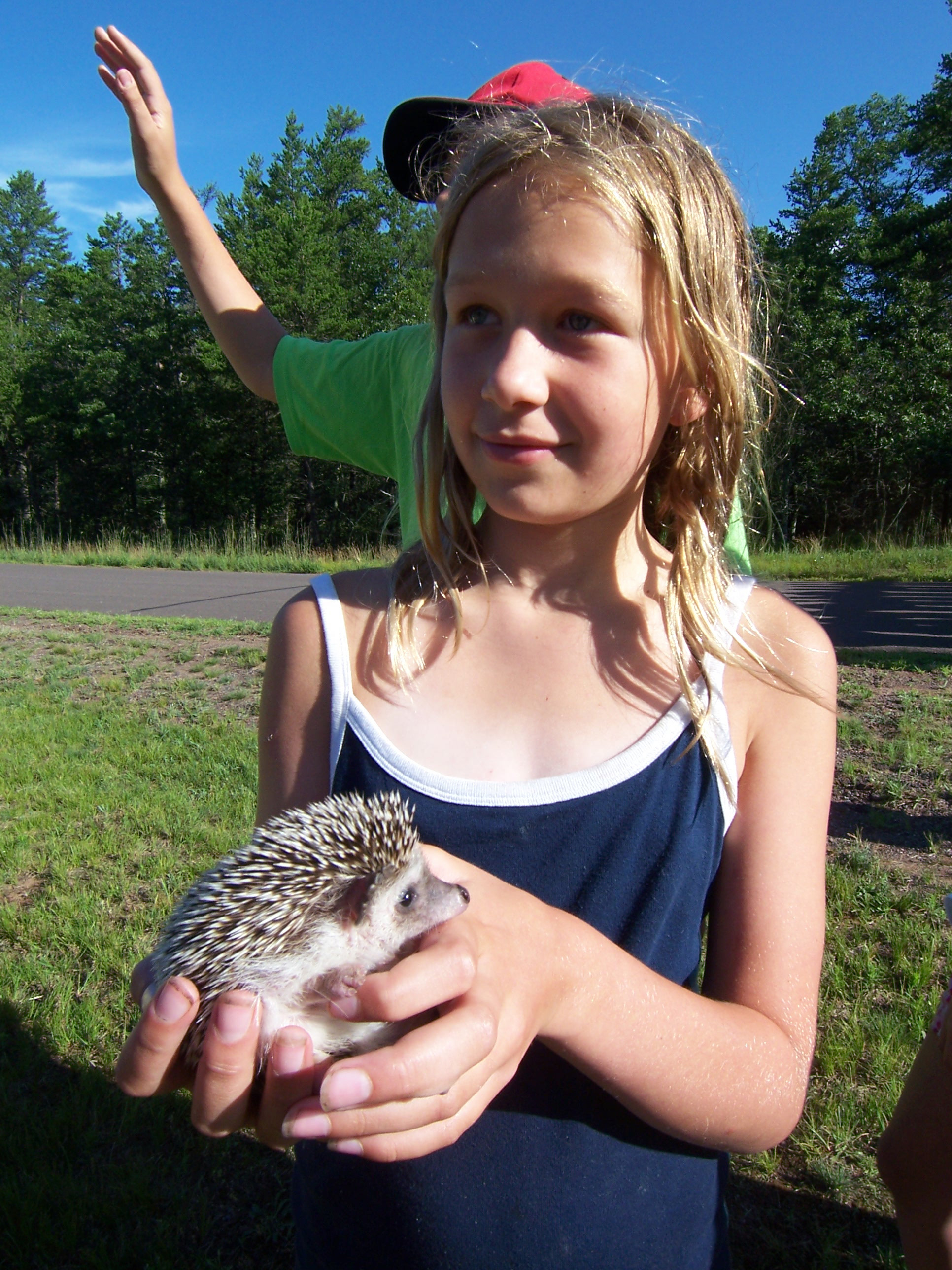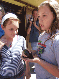 Maggie and Lily found a cool frog